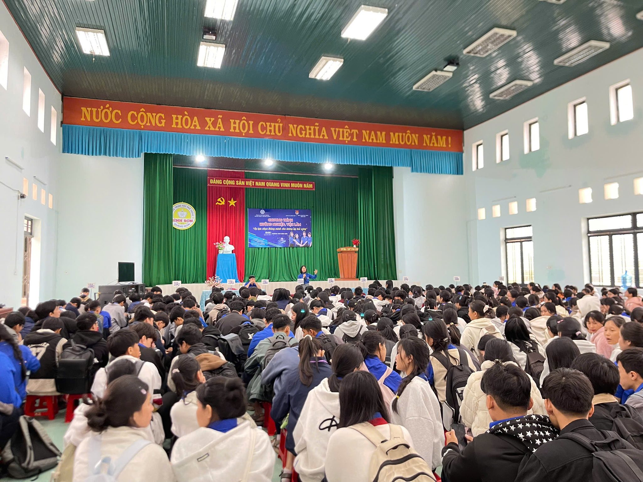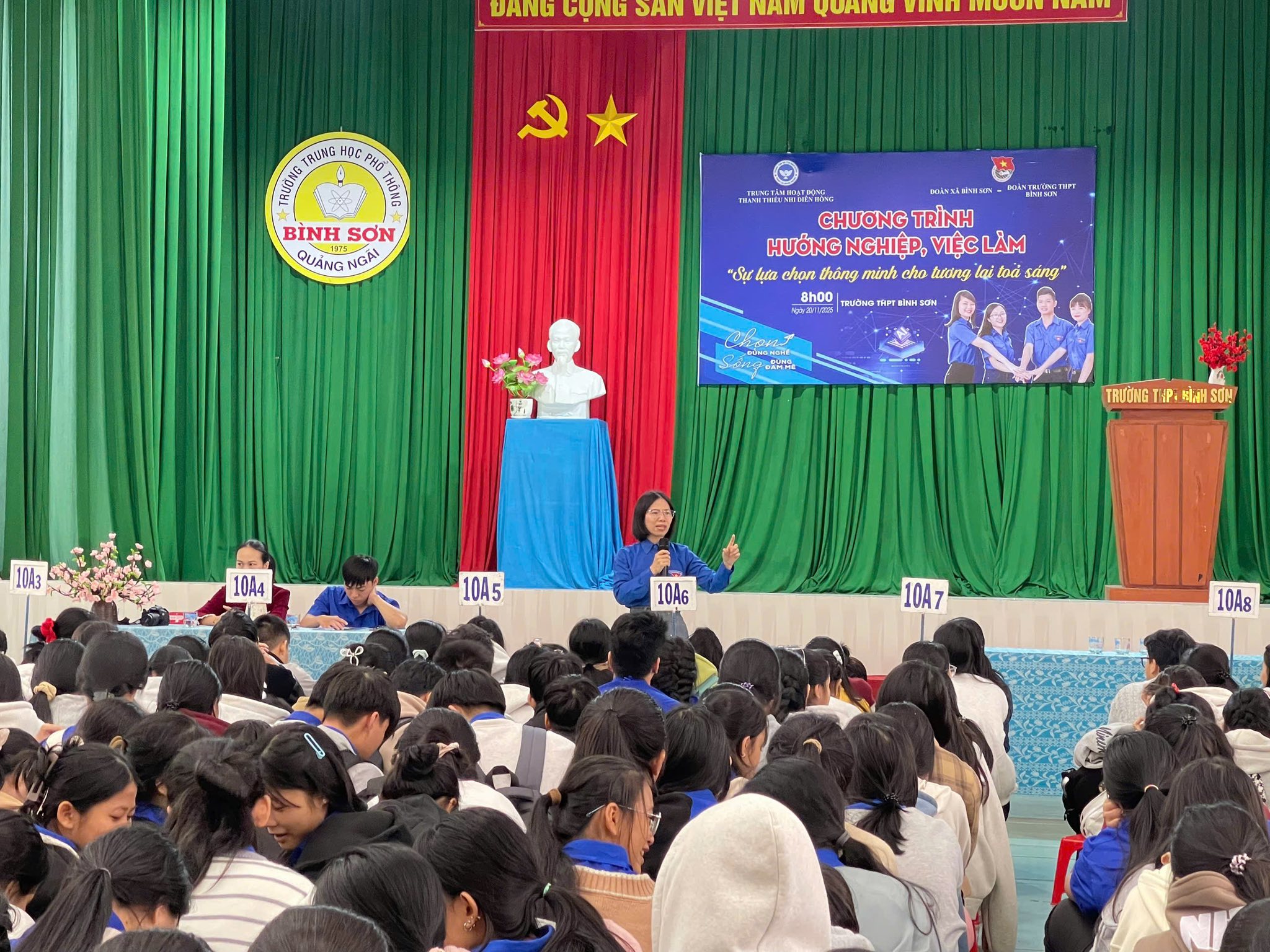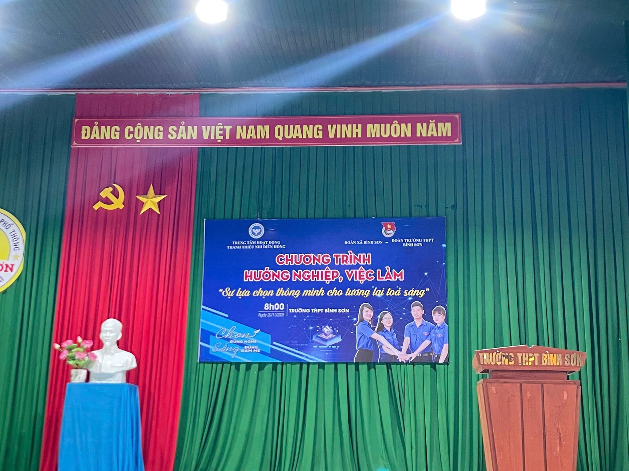Sáng thứ Bảy, ngày 22/11/2025, Đoàn trường THPT Bình Sơn phối hợp với Đoàn xã Bình Sơn và Trung tâm Hoạt động Thanh thiếu nhi Diên Hồng tổ chức chương trình “Hướng nghiệp việc làm – Sự lựa chọn thông minh cho tương lai tỏa sáng” dành cho đoàn viên, thanh niên và học sinh nhà trường.